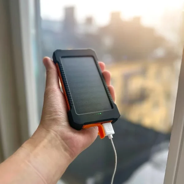 Aurinkolatausominaisuus on erittäin kätevä retkeilymatkoilla. Virtapankki oli hyvin pakattu ja saapui perille ilman ongelmia.