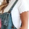 Nämä farkkuhaalarit on valmistettu pestystä farkkukankaasta, mikä antaa niille trendikkään, kuluneen ilmeen. Niissä on löysä, ylimitoitettu istuvuus, säädettävät olkaimet ja joitakin revitettyjä yksityiskohtia, jotka lisäävät luonnetta.