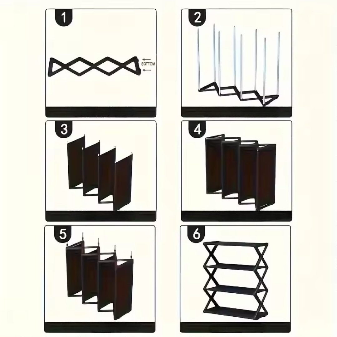 Denne enkle sammenleggbare skohyllen er en rask, solid og stilig måte å holde orden på skoene dine på. Med sin enkle sammenleggbare design og bunnsolide stabilitet har den plass til flere par uten å vakle eller kollapse. Sett den opp på bare 3 sekunder og nyt et rotfritt rom umiddelbart!