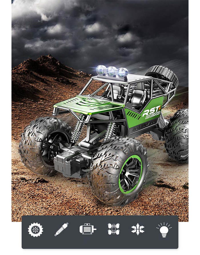 Denne kraftige fjernstyrte bilen er bygget for eventyr. Med store dekk, sterk fjæring og robust design er den perfekt for barn (og voksne!) som elsker actionfylt lek – inne eller ute.