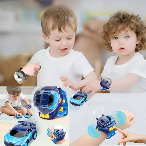 Med denne fjernstyrte bilklokken kan barna kjøre en minibil ved hjelp av en klokkekontroll. Det gjør leken morsommere, mer aktiv og interaktiv, både innendørs og utendørs.
