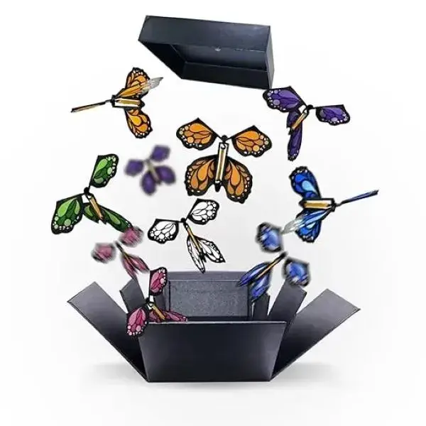 Denne morsomme lille sommerfuglen basker med vingene og flyr når du slipper den. Den ser magisk ut og bringer frem store smil.