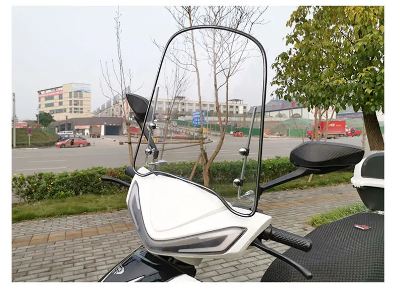Denne motorsykkelvindskjermen gir økt komfort og sikkerhet ved å redusere vindpåvirkning og blokkere regn. Den gjennomsiktige designen og den universelle passformen gjør den til en praktisk oppgradering for mange motorsykler og elektriske kjøretøy. En enkel og effektiv frontrute som forbedrer komforten, sikten og beskyttelsen på hver eneste kjøretur.