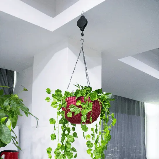 Med disse sterke, uttrekkbare krokene kan du trekke plantene dine ned for å vanne eller mate dem uten å bruke en stige. Rask, trygg og enkel!