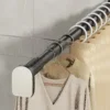 Denne kleshengestangen er designet for enkel montering uten behov for boring. Du trenger bare å forlenge stangen slik at den passer til rommet ditt, så sitter den sikkert på plass, noe som sparer deg for tid og krefter, samtidig som du unngår skader på veggene.