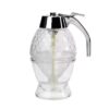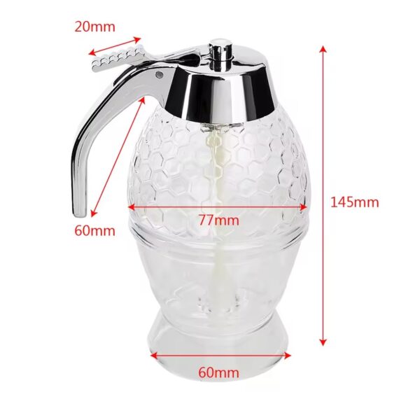 Honningdispenseren gjør det enkelt å helle honning uten søl. Bare trykk på håndtaket, så renner honningen jevnt ut. Den holder hendene og kjøkkenet rent under bruk.