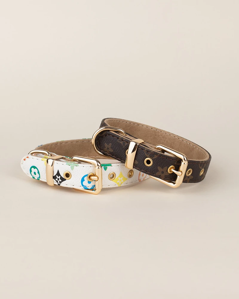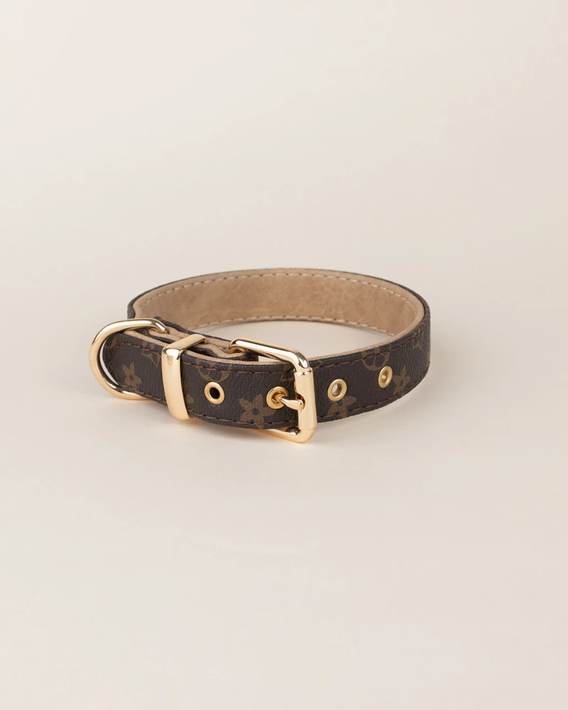 Unn din pelskledde venn den perfekte blandingen av komfort, kvalitet og mote. Dette hundehalsbåndet i førsteklasses PU-lær er inspirert av designere og har lekne mønstre og en gylden spenne som gir valpen din en stilig touch.