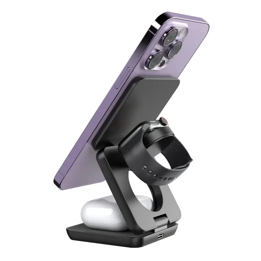 Hold rommet ditt ryddig og enhetene dine med strøm med denne trådløse 3-i-1-ladestasjonen designet for Apple-produkter. Enten du er hjemme, på jobb eller på farten, kan du lade iPhone, AirPods og Apple Watch samtidig – raskt og trådløst.