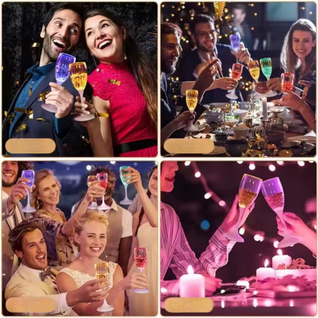 Disse LED-vinglassene lyser automatisk opp når de fylles, og skaper en fantastisk glødeffekt som forvandler fester, middager og feiringer. Med flere farger å velge mellom, kan gjestene enkelt identifisere drinkene sine mens de nyter en unik og festlig opplevelse. En morsom og iøynefallende måte å løfte enhver feiring på og imponere gjestene dine. Skål for glødende øyeblikk!