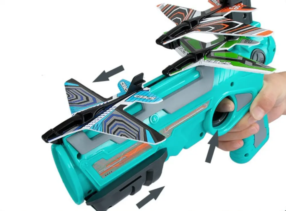 Denne boblekatapult-lekekanonen inneholder myke skumfly som er enkle å skyte opp og morsomme å fly. Det er en trygg og spennende måte å holde barna aktive på, forbedre koordinasjonen og nyte tiden utendørs med familie og venner. Denne leken er designet for praktisk moro uten batterier, og flyene kan skytes opp til 6 meter med en enkel avtrekker. Den er lett og trygg og passer perfekt til parker, bakgårder og som gave!