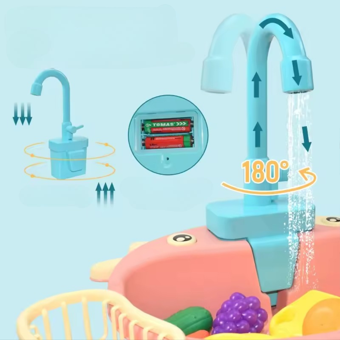 Gjør leken morsommere og mer lærerik med lekevasken, et realistisk minikjøkken som lar barna vaske, lage mat og lære på en trygg måte. Denne temperaturfølsomme oppvaskkummen gjør vanlig vannlek til en spennende praktisk opplevelse som lærer barna ansvar, organisering og koordinasjon.