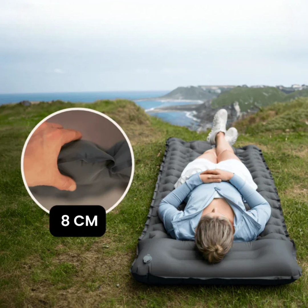 Dette ultralette liggeunderlaget med innebygd pute og pumpe er din beste følgesvenn for fotturer, camping, festivaler eller spontane bilturer. Det blåses opp på bare 30 sekunder, veier mindre enn en vannflaske og passer i enhver ryggsekk.
