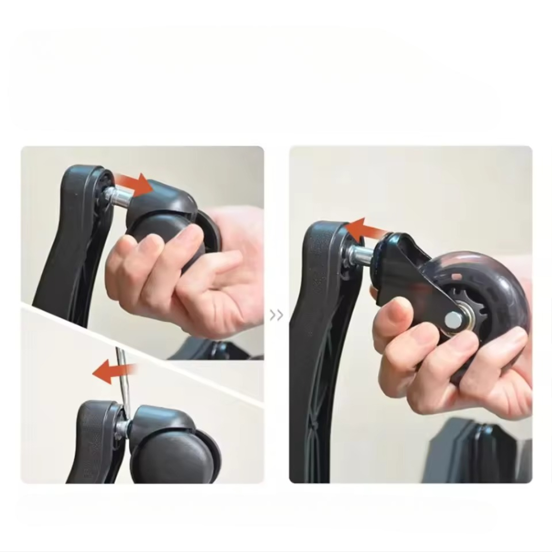 Disse hjulene er perfekte for hjemmekontorer, arbeidsområder og spilloppsett. Designet med to hjul sprer vekten jevnt, reduserer friksjonen og forbedrer mobiliteten. De passer til de fleste kontorstolsunderstell og monteres på få sekunder – bare skyv dem inn, så er du klar til å rulle.