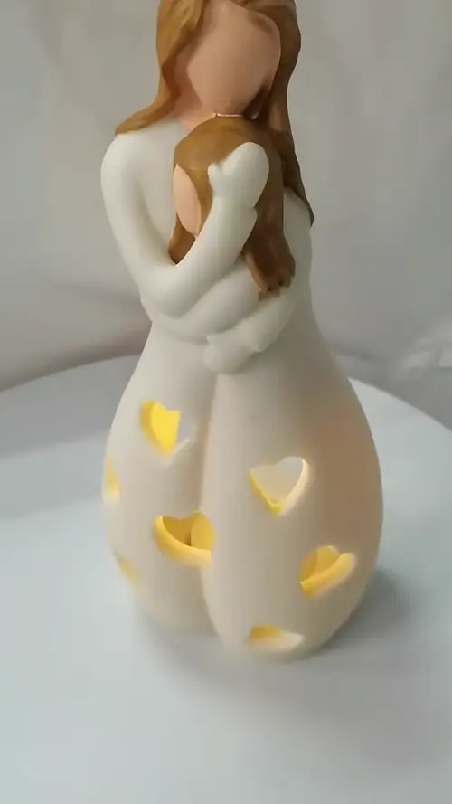 Den elegante lysestaken i resin fanger det dype båndet mellom en mor og hennes datter – et symbol på kjærlighet, omsorg og samhold. Den er mer enn bare et dekorativt møbel, den har et flakkende LED-lys som gir en myk, koselig glød i hjemmet. Perfekt som en meningsfull gave, et minnesmerke eller et fantastisk midtpunkt for ethvert moderne interiør.