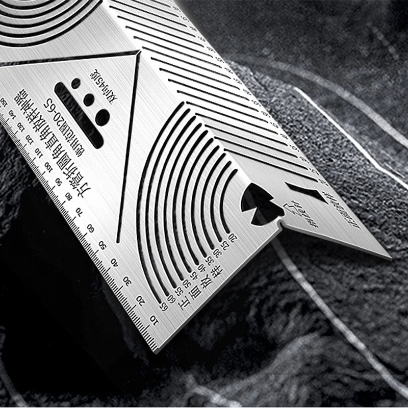 Dette Multivinkelmarkeringsverktøyet gir deg en rask og pålitelig måte å markere buer, vinkler, bøyninger og hjørnelinjer på tre, metall, møbler og byggeprosjekter. Det sterke, slitesterke materialet og de tydelige skalaene gjør hvert merke rent og presist.