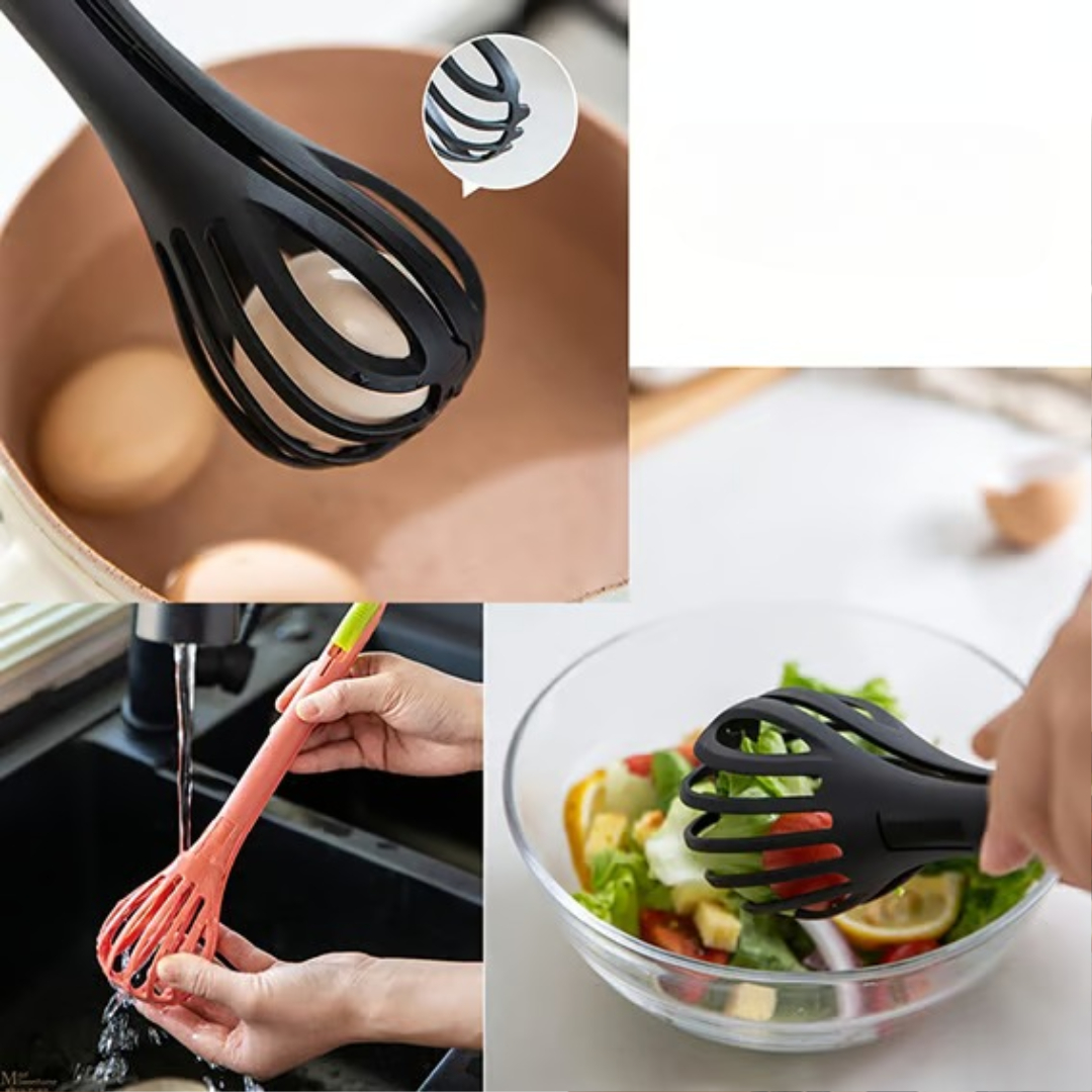 Denne multifunksjonelle eggevispen kombinerer en visp og en kjøkkentang i ett smart design, noe som gjør matlagingen raskere og enklere. Den blander egg, sauser, fløte og røre jevnt, samtidig som den lar deg gripe og løfte mat som egg, pasta eller nudler uten å bytte verktøy. Den er laget av næringsmiddelgodkjente materialer og er trygg, holdbar og behagelig å bruke hver dag.
