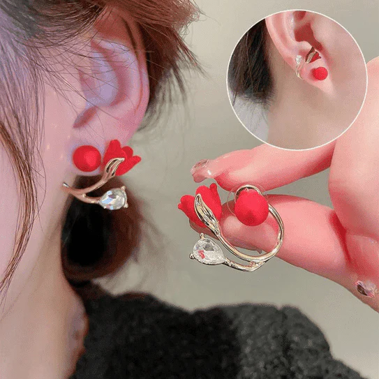 Disse tulipaninspirerte øredobbene fanger naturens delikate skjønnhet og tilfører en sofistikert sjarm til looken din. De er laget av høykvalitetslegering og er designet for å vare – noe som gjør dem til et perfekt hverdagstilbehør eller en grasiøs aksent for spesielle anledninger.