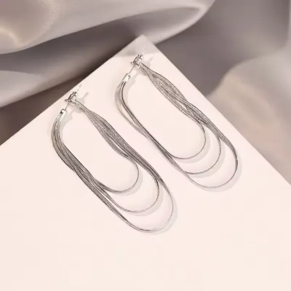 Disse øreringene med dusk har et fantastisk geometrisk design med lange, bølgende dusker som tilfører et snev av glamour til ethvert antrekk. Øredobbene er perfekte til bryllup, fest eller formelle arrangementer, og de vil få deg til å skille deg ut uten problemer.