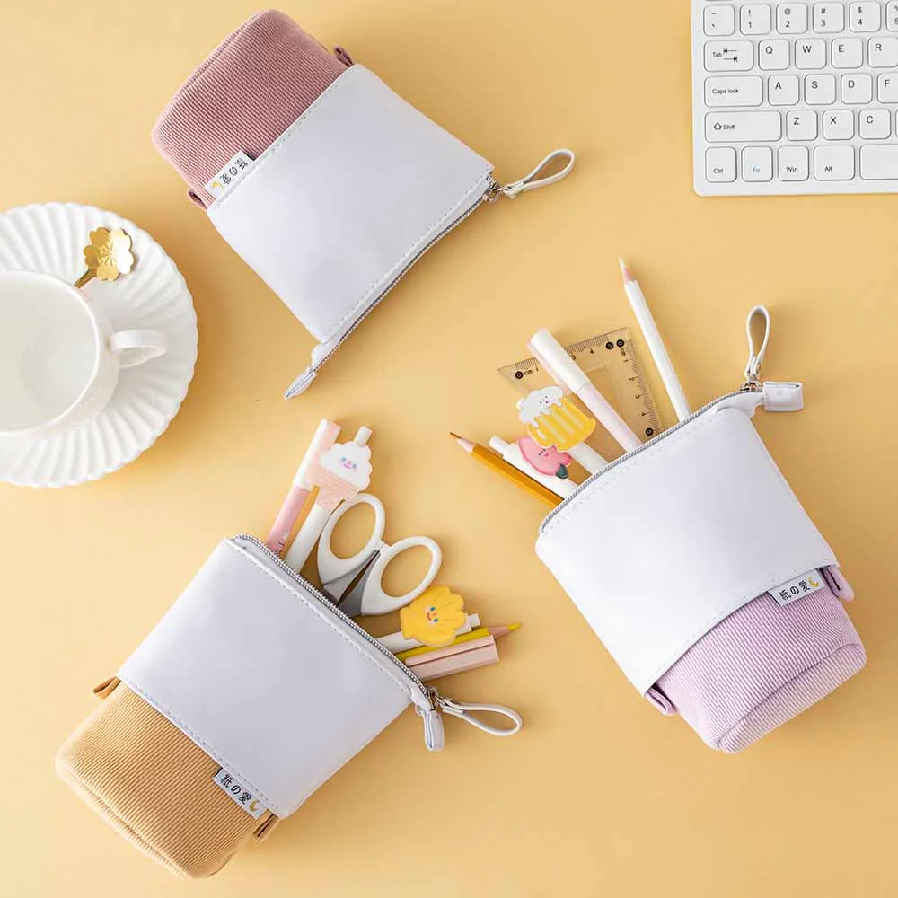 Denne smarte og estetisk pennal som fungerer både som en bærbar veske og en pennholder for stående skrivebord. Det er laget av myk bomull og vegansk lær, er slitesterkt, komfortabelt å bruke og stort nok til å romme alle favorittpennene, blyantene og skrivesakene dine – perfekt for skole-, kontor- eller hjemmebruk.