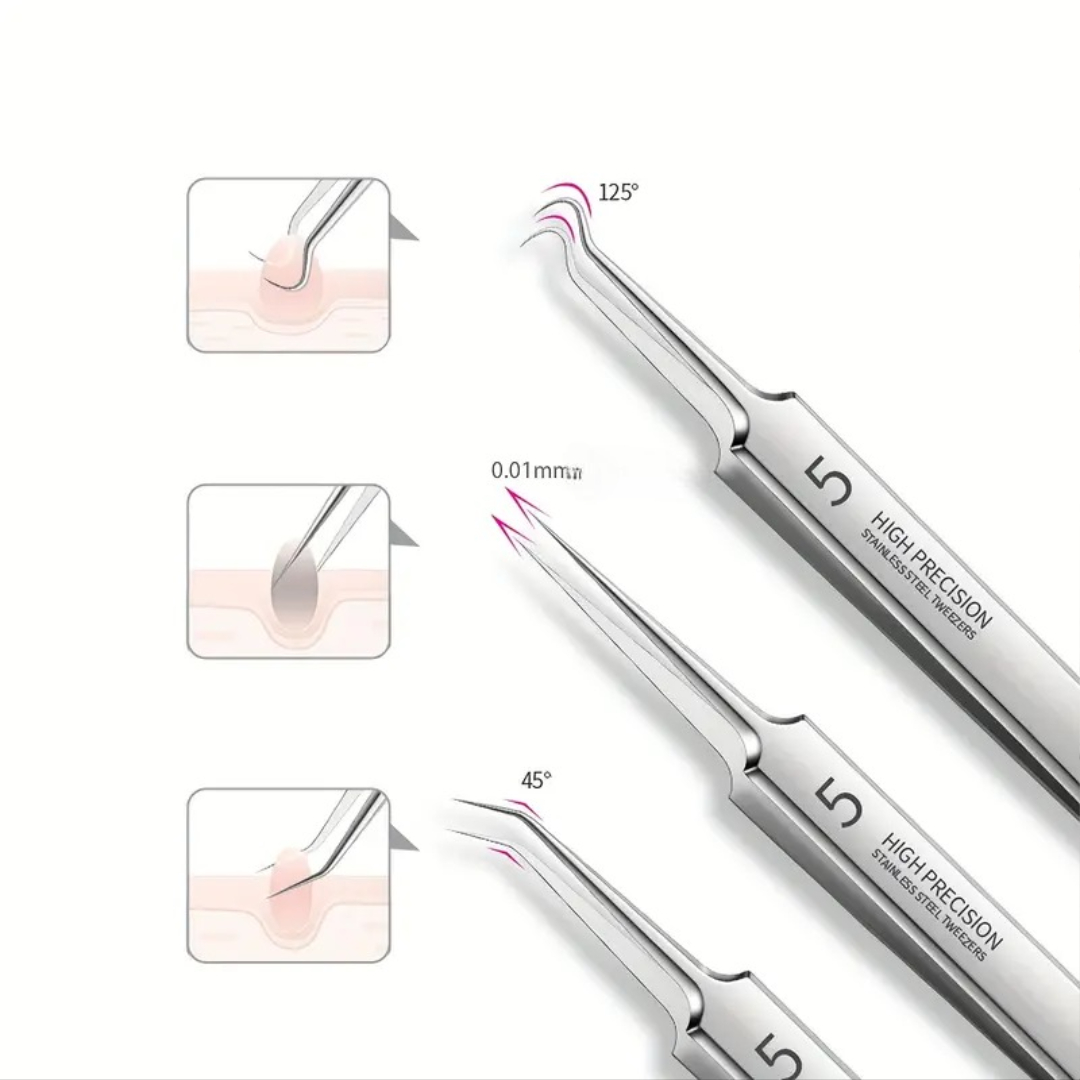 🎯 Presisjonsfjerning – ultrafine 0,01 mm spisser griper lett tak i hudormer og urenheter.