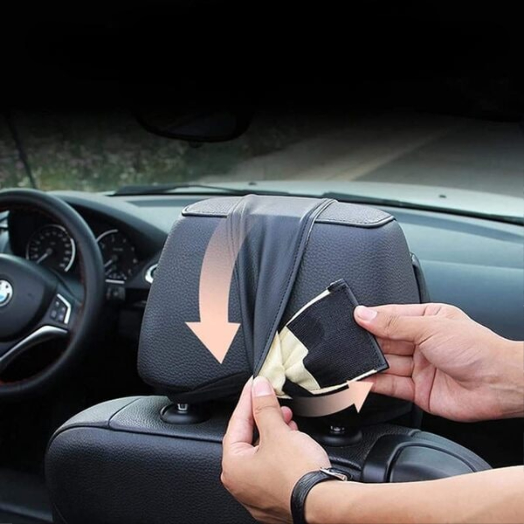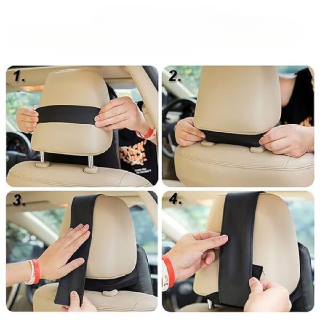 - Plasser puten på nakkestøtten på bilsetet ditt.