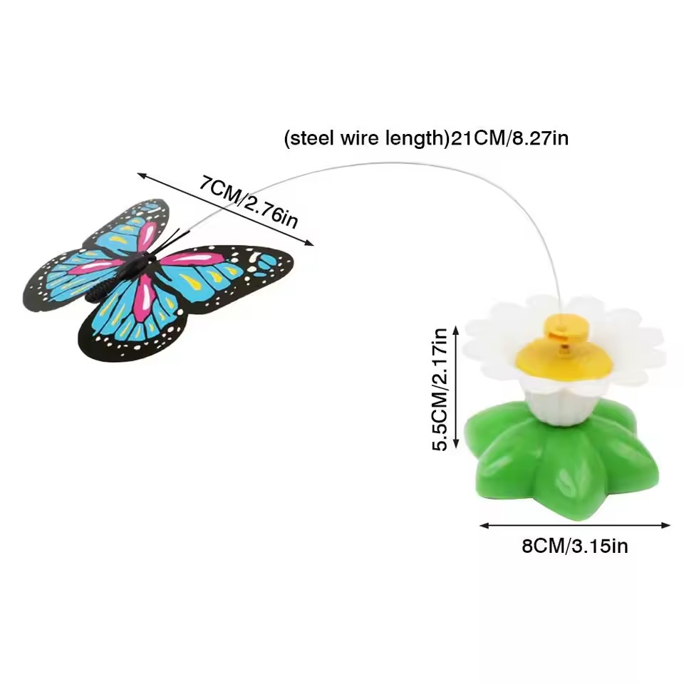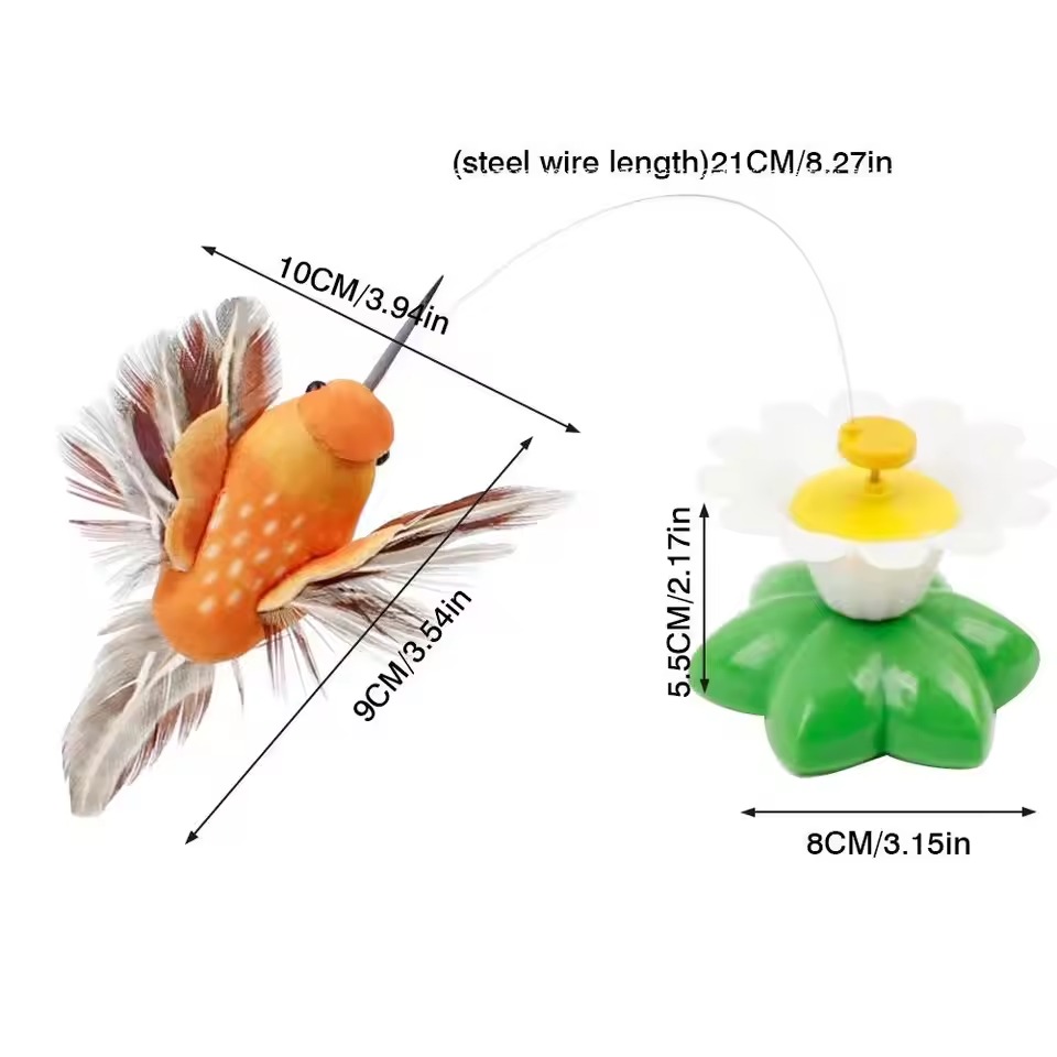 Den roterende katteleken har fargerike sommerfugler og fugler som snurrer i alle retninger og holder katten din underholdt i timevis. Den spennende bevegelsen fanger kattens oppmerksomhet og oppmuntrer den til å holde seg aktiv og glad. Det er den perfekte måten å holde kjæledyret ditt engasjert på, samtidig som det gir uendelig mye moro.