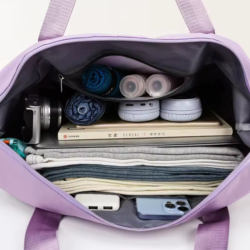 Denne sammenleggbare reisevesken har stor kapasitet, flere lommer og en smart skillevegg for vått/tørt, noe som gjør den perfekt for reiser, treningsdager, shopping eller daglig bruk. Den kan brettes flatt for å spare plass, utvides ved behov og festes enkelt til bagasjen for stressfri reise.