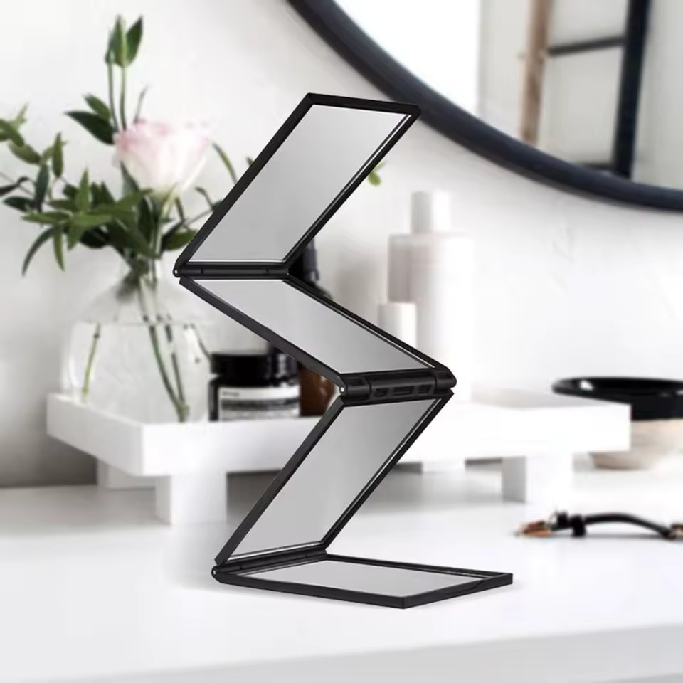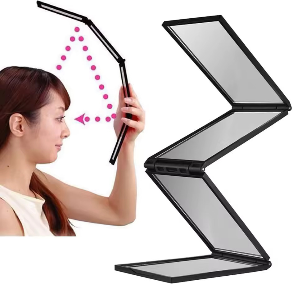 Dette sammenleggbare speilet med flere vinkler gir deg 360-graders utsikt for selvklipp, sminke, hårfarging, fletting og detaljert grooming. Den sterke rammen, de klare speilene og den bærbare designen gjør det enkelt å style deg selv hjemme eller på farten.