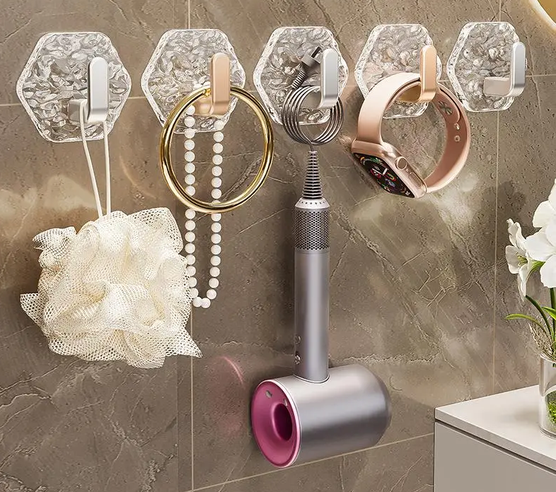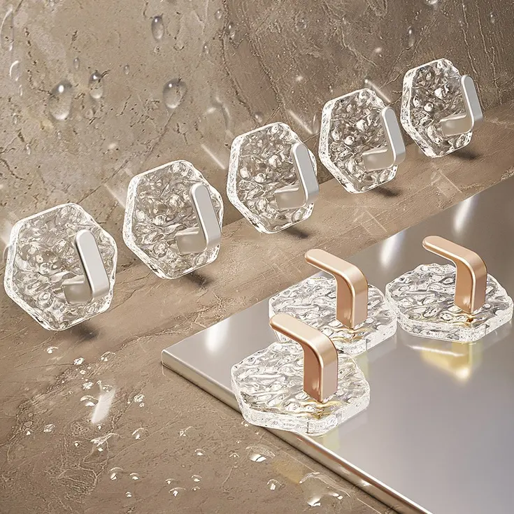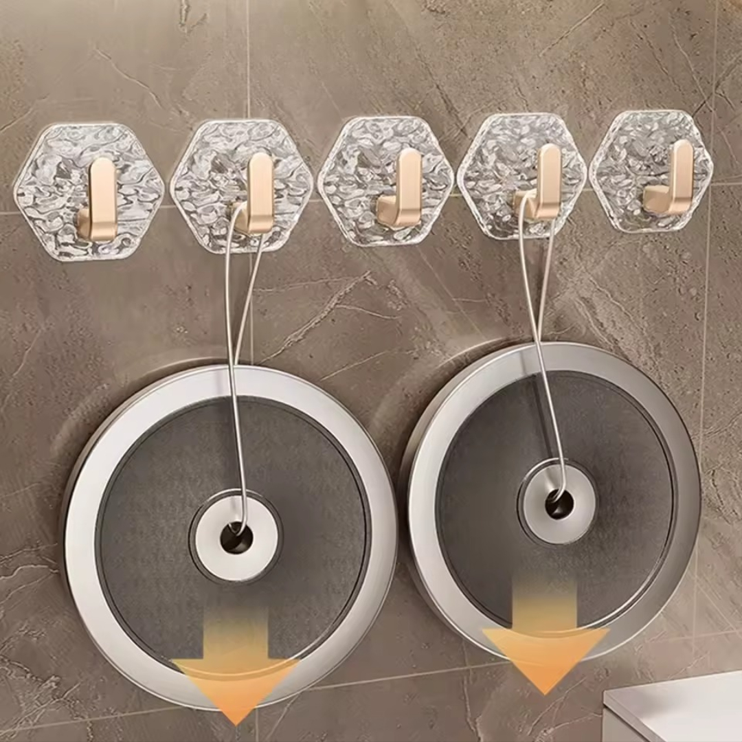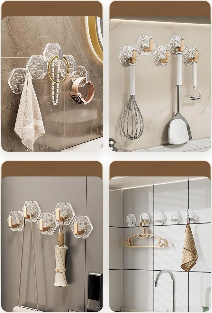 Disse sekskantede krokene uten boring bruker et sterkt selvklebende system for å holde hverdagsgjenstander trygt på plass. De monteres på sekunder, ser stilige ut og fungerer perfekt selv i fuktige områder som bad og kjøkken.