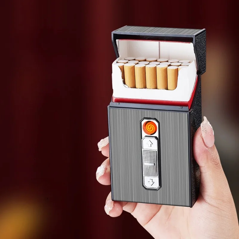 Dette sigarettetuiet rommer en hel pakke og har en innebygd lighter for rask bruk hvor som helst. Det beskytter sigarettene mot knusing, fuktighet og skader, samtidig som du får en pålitelig flamme når du trenger det. Ideell for daglig bruk hjemme, på jobb eller på farten.