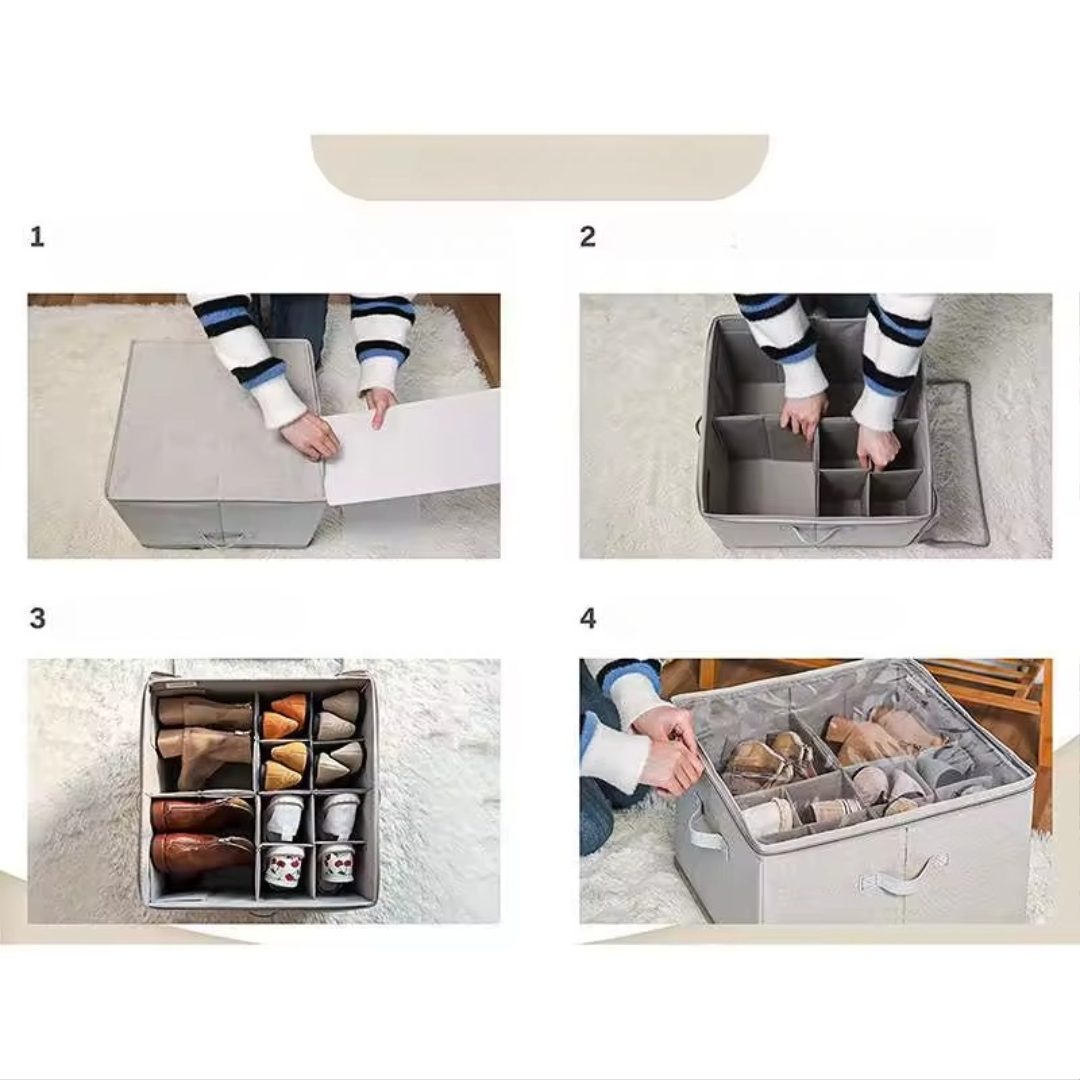Denne skoorganisatoren er den perfekte oppbevaringsløsningen for alle som ønsker en ryddig og plassbesparende måte å oppbevare fottøyet sitt på. Med opptil 12 rom hjelper dette sammenleggbare skostativet deg med å organisere alt fra joggesko og sandaler til leiligheter – samtidig som du holder dem støvfrie og enkle å få tilgang til.