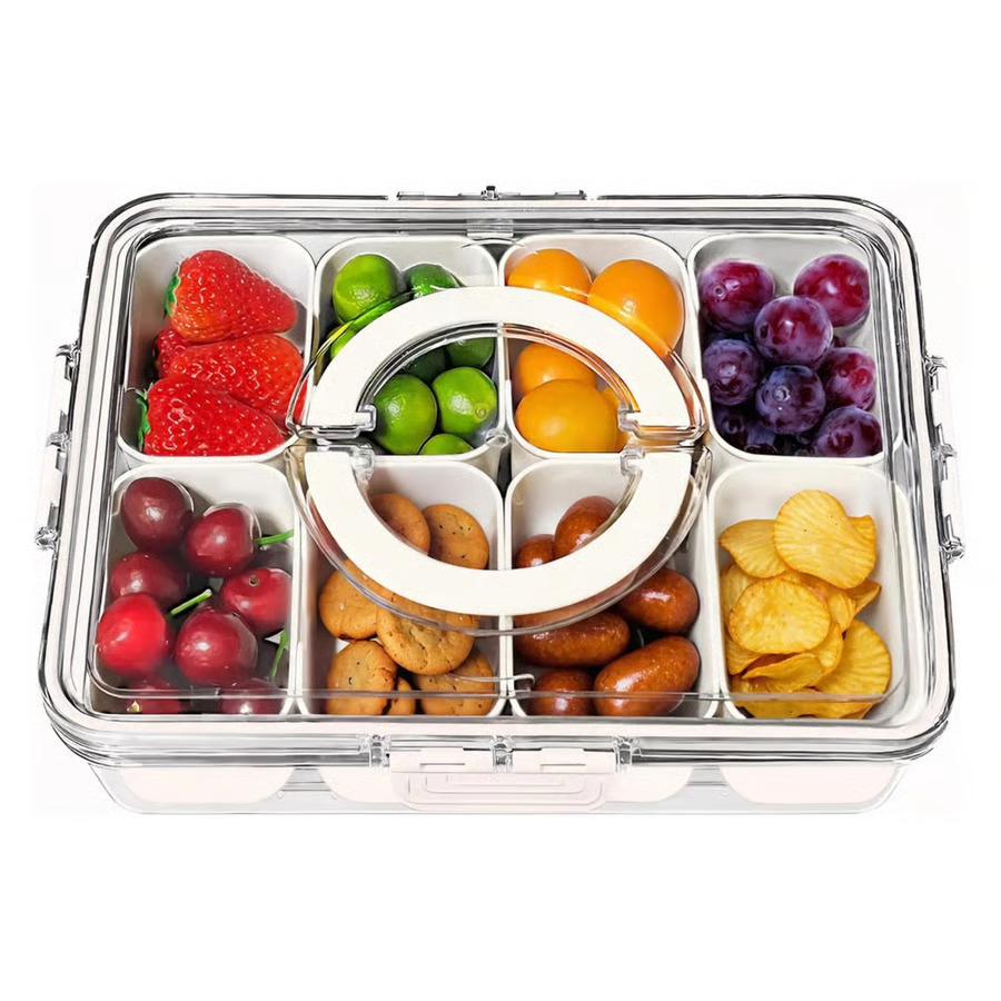 Denne stabelbare snacksbeholderen gir deg fire eller åtte lekkasjesikre rom til oppbevaring av snacks, frukt, dipper eller andre småting uten å blande eller søle. De sikre forseglingene, det ergonomiske håndtaket og den stabelbare designen gjør den perfekt for barnas matpakker, tilberedning av måltider, reiser og daglig bruk.