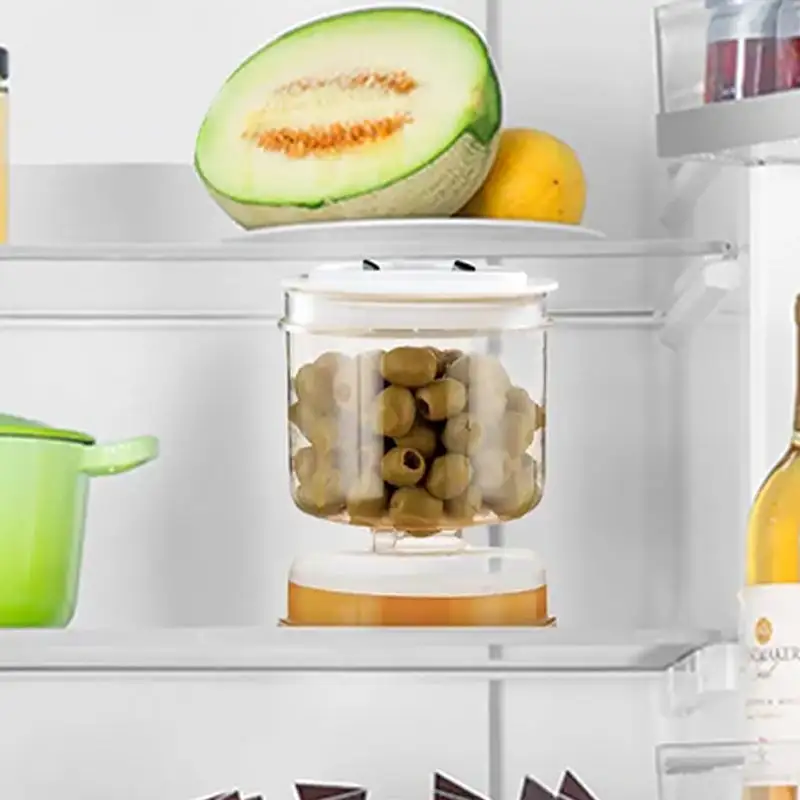 Dette smarte sylteagurkglasset har et timeglassdesign som gjør det enkelt å skille vått og tørt innhold med en gang. Du slipper å fiske i saltlake eller søle saft – bare vipp, hell og nyt rene, enkle porsjoner med sylteagurk, oliven, frukt og mye mer.