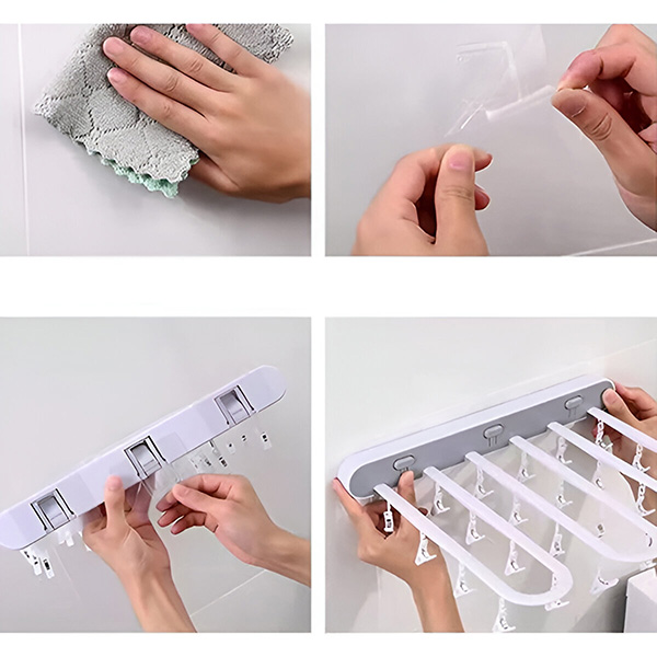 Dette sammenleggbare veggmonterte tørkestativet er en smart løsning for tørking av sokker, undertøy, små klær og til og med kunstverk. Det åpnes ved behov og foldes sammen når det ikke er i bruk, og holder hjemmet eller klasserommet rent og organisert uten å ta opp plass. En praktisk, plassbesparende tørkeløsning for hjem, klasserom og små rom.