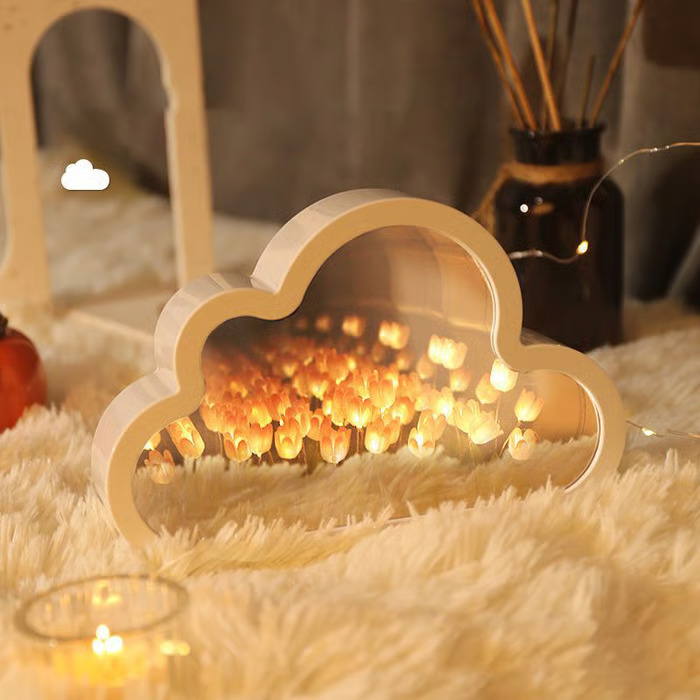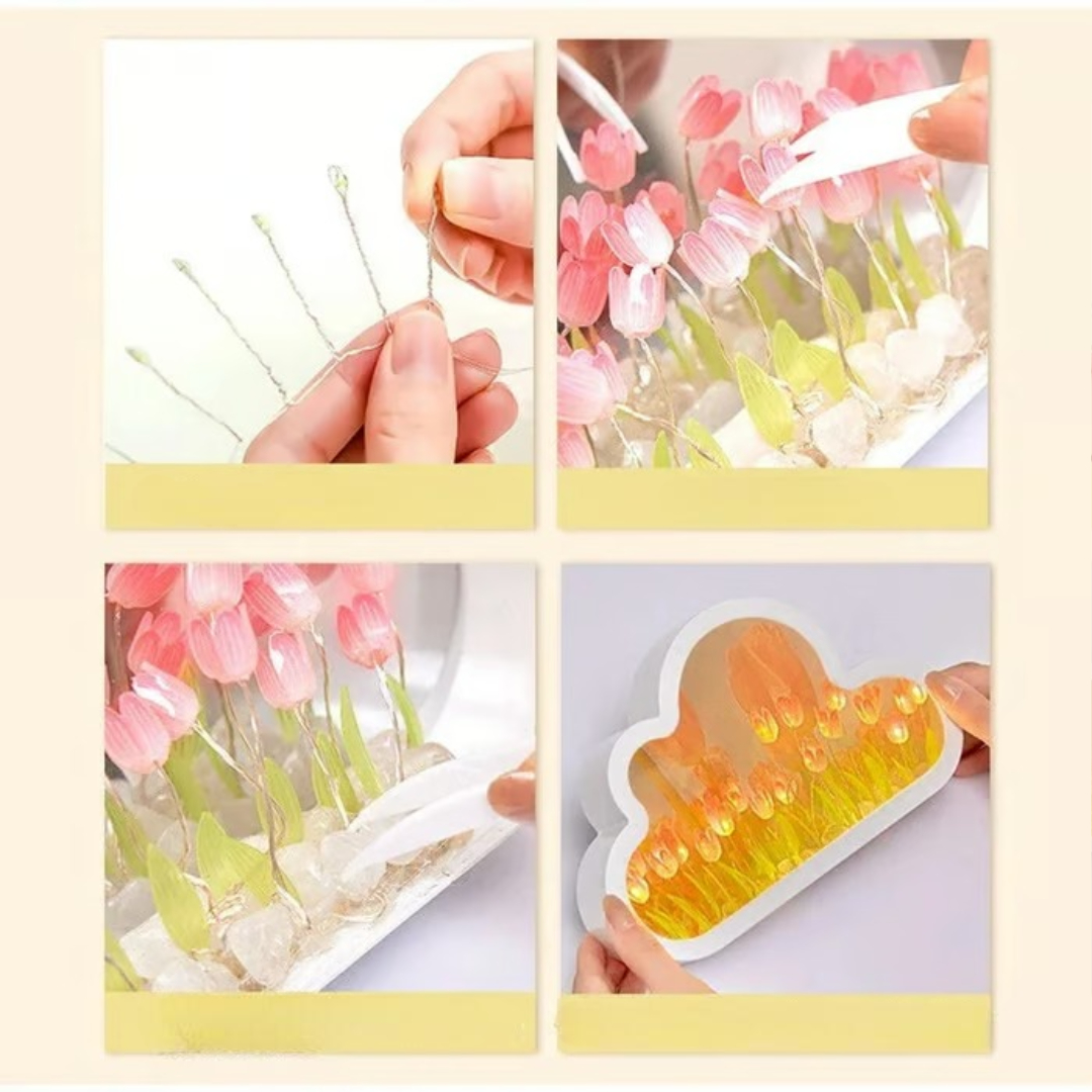 Tilfør rommet ditt sjarm, farge og mildt lys med dette tulipan-nattlysspeilet. 🌸