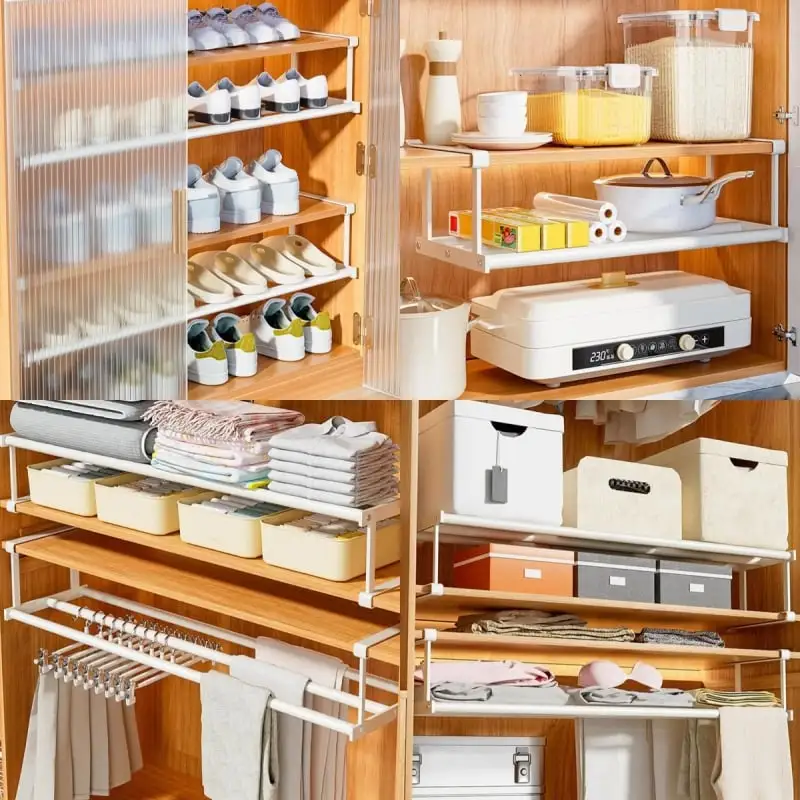 Denne utvidbare organisatoren med flere nivåer gir deg en enkel, justerbar og holdbar måte å organisere sko, bøker, håndklær og mer på. Den utvidbare designen lar deg velge nøyaktig den lengden du trenger, noe som gjør den perfekt for ethvert skap, hylle eller garderobe.