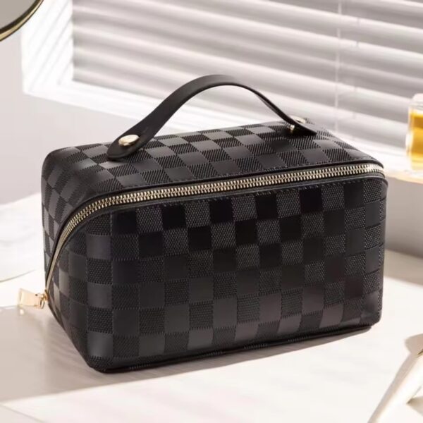 Den vanntette kosmetikkvesken har et solid håndtak som gjør den enkel å ta med seg overalt. Den lette og kompakte designen gjør at den lett får plass i kofferten eller håndvesken. Enten du er på reise eller organiserer hjemme, er denne vesken et must.