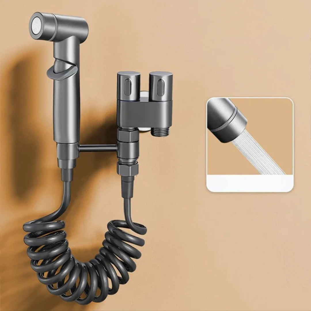 Dette veggmonterte bidetdusjsettet lar deg rengjøre med rennende vann i stedet for tørt toalettpapir, slik at du unngår irritasjon, ubehag og lukt. Det gir badet ditt en moderne oppgradering samtidig som det tilbyr en mer hygienisk og miljøvennlig rengjøringsmetode.