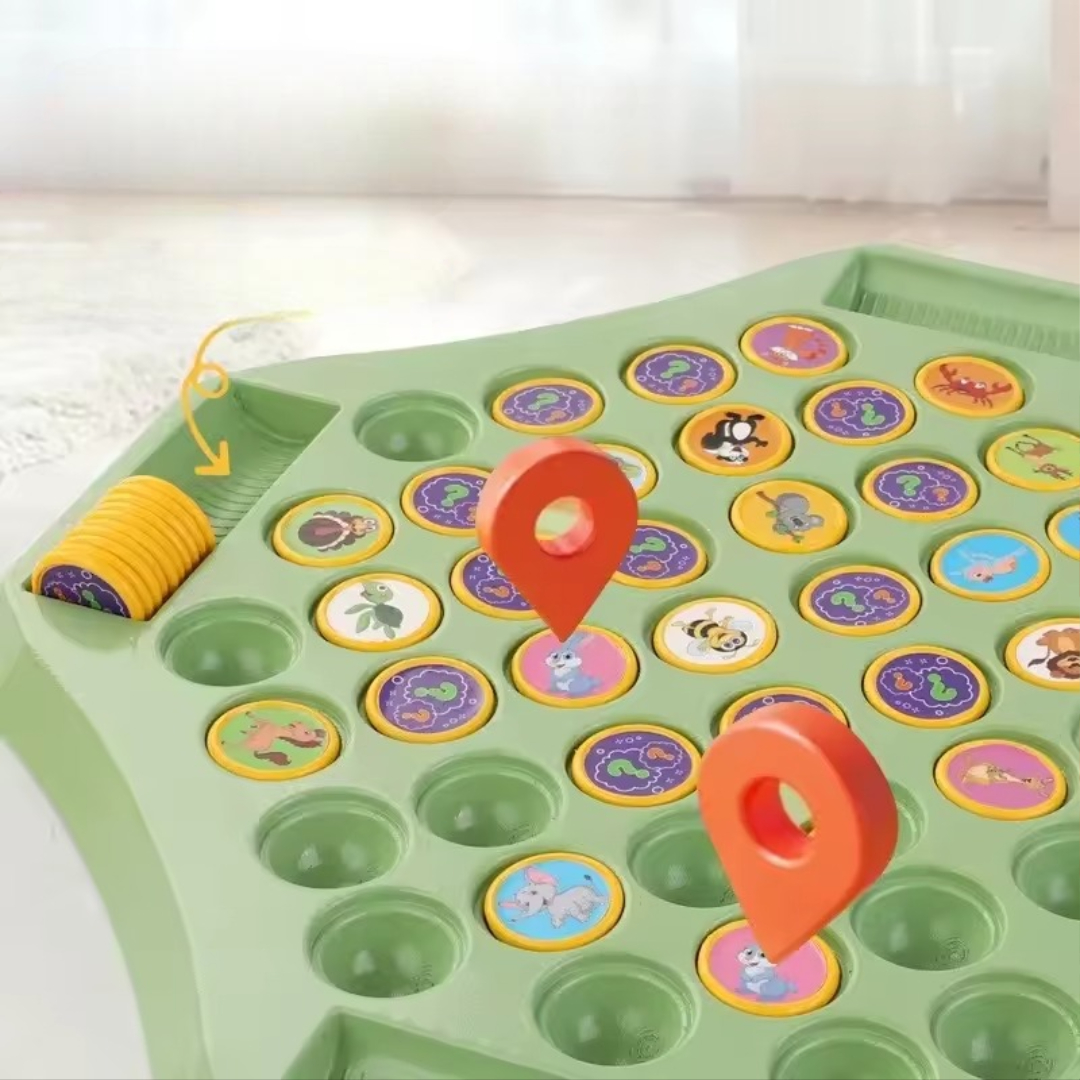 Dette vippespillet med dyr og frukt gjør læring til lek ved å kombinere fargerik matchende med praktisk interaksjon. Barna utvikler hukommelse, fokus og koordinasjon samtidig som de kan spille et enkelt spill alene eller sammen med familien. Dette vendespillet hjelper barn å gjenkjenne dyr og frukt, samtidig som det trener oppmerksomheten og evnen til å matche. Med DIY-klistremerker og turbasert lek holder barna seg engasjerte og lærer naturlig gjennom repetisjon og moro.