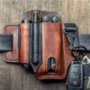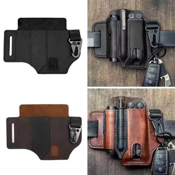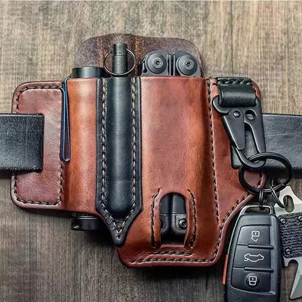 Verktøyhylsteret i lær er laget av lærmateriale av høy kvalitet, noe som sikrer styrke og lang holdbarhet. Det motstår slitasje og skjæring, noe som gjør det til et pålitelig valg for utendørsaktiviteter og daglig bruk. Materialet er lett å vedlikeholde og holder seg rent selv etter lang tids bruk.