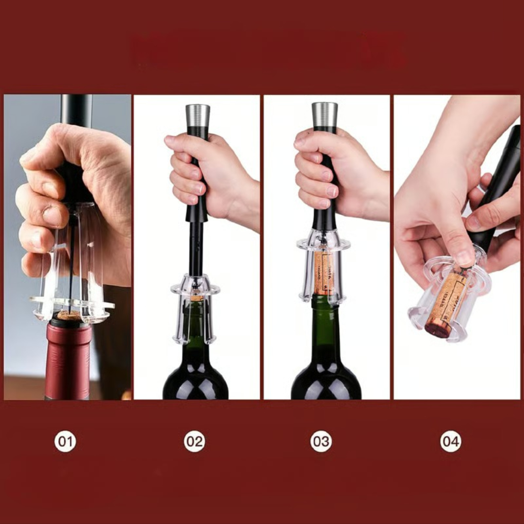 💨 Lufttrykksteknologi – Fjerner korker trygt uten å vri eller skade dem.