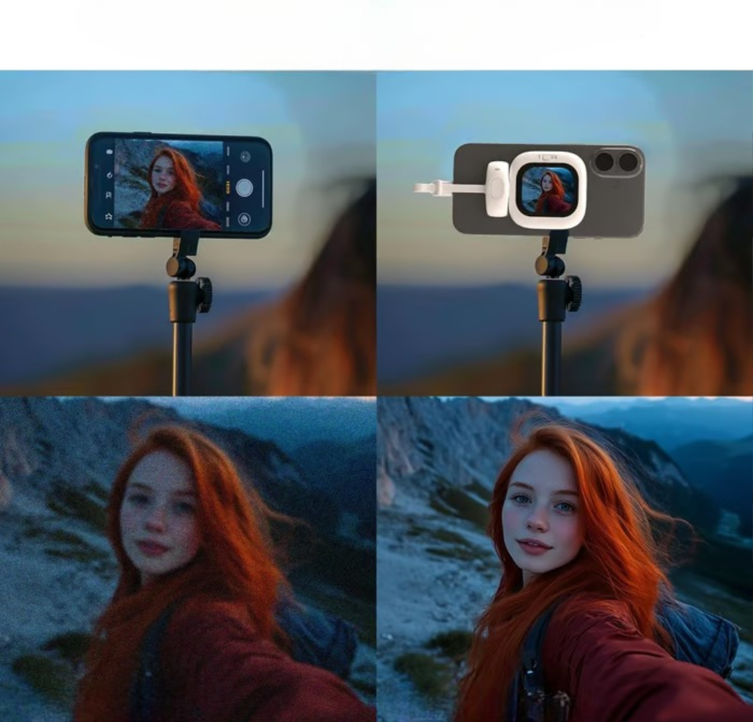 🔋 Drevet av din iPhone – Bruker bare 0,6 W og kan monteres direkte på magnetiske strømbanker for kontinuerlig fotografering.