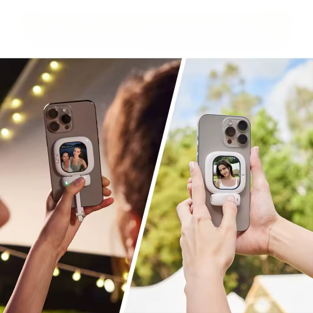 Denne vlogmate mini-selfiemonitoren gir deg en forhåndsvisning i sanntid av bakkameraet ditt, slik at du kan filme TikToks, livestreams og bilder med perfekt innramming og profesjonell klarhet. Den kobles til umiddelbart, har null forsinkelse og fungerer hvor som helst du filmer – til og med utendørs.