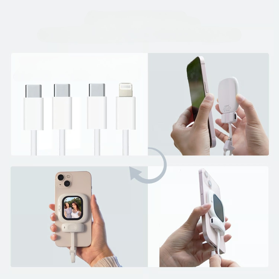 🔋 Drevet av din iPhone – Bruker bare 0,6 W og kan monteres direkte på magnetiske strømbanker for kontinuerlig fotografering.