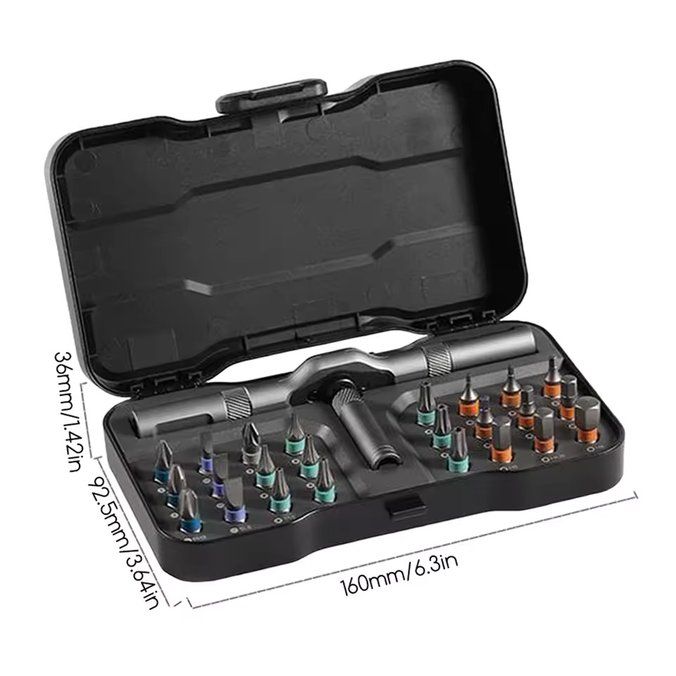 Den 24-in-1 spärrskruvmejsel ger dig alla bits du behöver i en uppsättning, så att du kan ta itu med reparationer hemma, i garaget eller på språng. Den är tillverkad av starkt krom-vanadiumstål och ger långvarig hållbarhet och smidig spärrkraft för enkel vridning i trånga utrymmen.