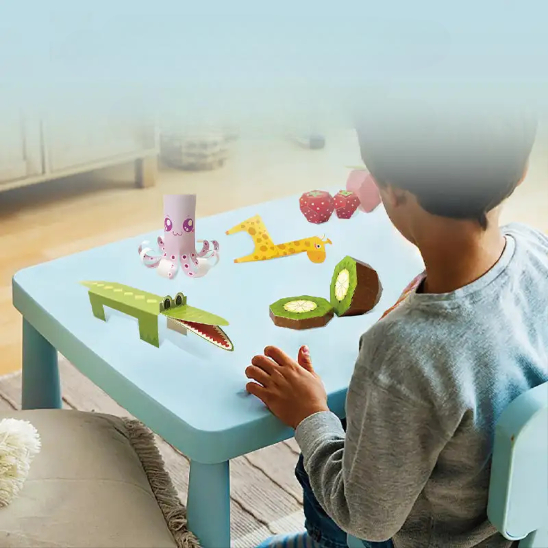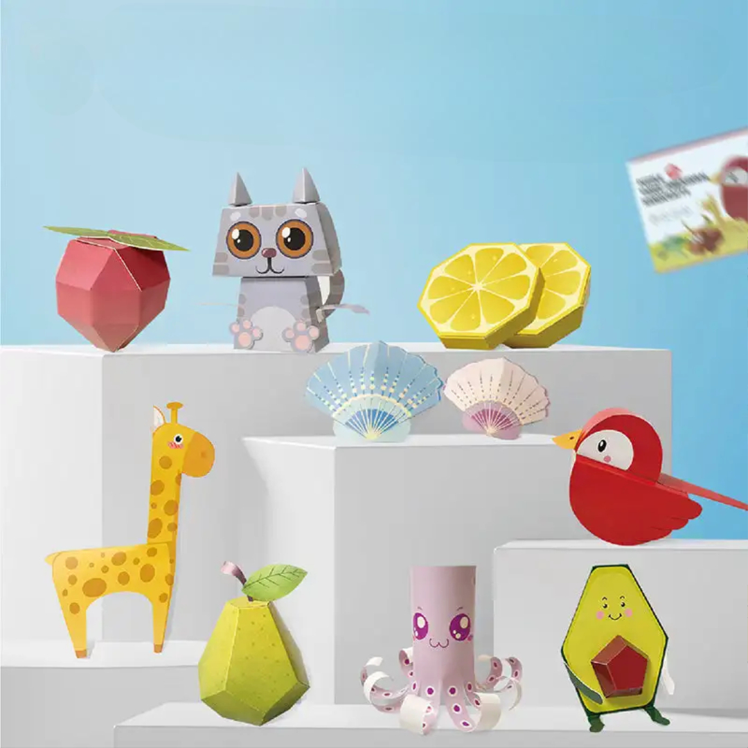 Denna handgjorda origamibok i 3D förvandlar platt papper till färgglada 3D-djur, frukter och klassiska former. Med tydliga viklinjer och steg-för-steg-vägledning kan barnen vika på ett säkert sätt samtidigt som de utvecklar kreativitet, fokus och finmotorik. Den här origamiboken erbjuder en praktisk 3D-upplevelse med 49 unika mönster i olika temauppsättningar. Den utstansade designen tar bort behovet av saxar, vilket gör det säkert för barn och stressfritt för föräldrar.