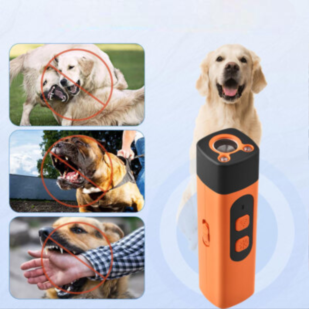 Hundars hörsel är betydligt känsligare än människans. De kan uppfatta dubbelt så många frekvenser som vi – vilket gör att den här enheten kan skicka ut ett milt ultraljud som bara hunden hör. Ljudet är helt ofarligt men tillräckligt irriterande för att avbryta skällandet och skapa uppmärksamhet. 🐶