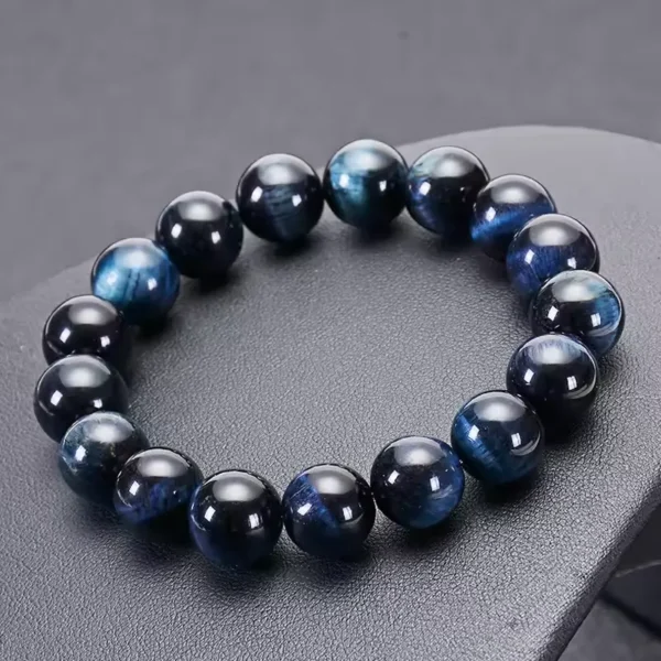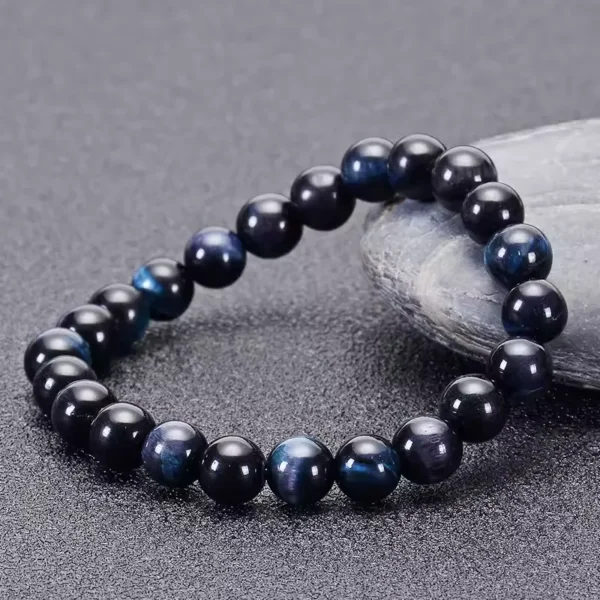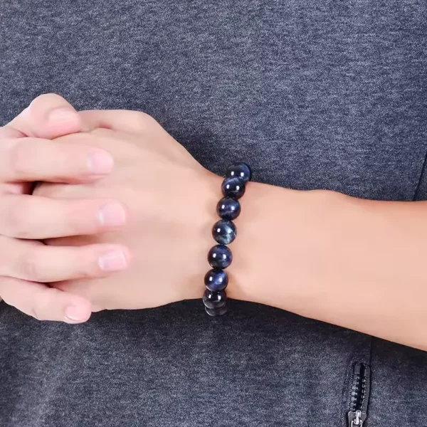 Armbandet med blå tigerögon är tillverkat av äkta tigerögonstenar. Varje pärla uppvisar en fantastisk blå nyans som tillför elegans och charm. Dessa naturstenar är kända för sina unika mönster och varaktiga hållbarhet.