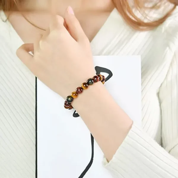 Tiger eye-armbandet är tillverkat av naturliga kristallstenar och erbjuder unika mönster och färger i varje bit. Dess livfulla röda, blå och gula nyanser ger en touch av naturens skönhet till din stil.