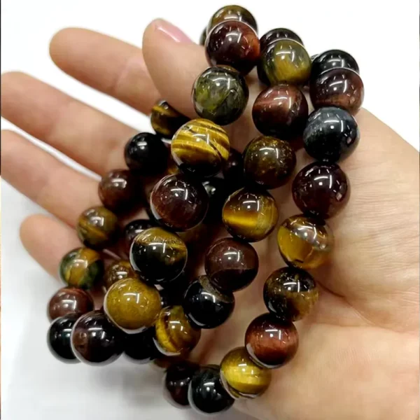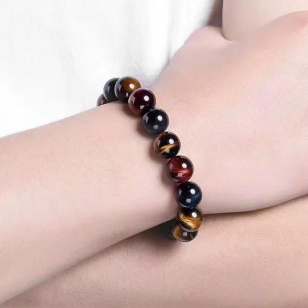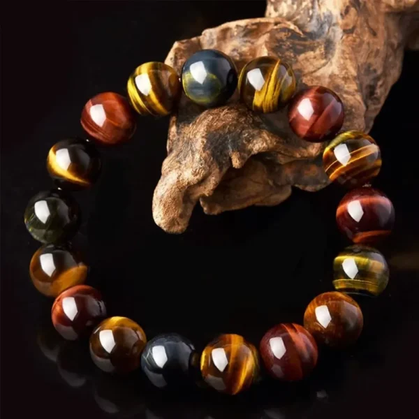 Detta armband kombinerar röda, blå och gula tigerögonstenar, vilket skapar ett slående och balanserat utseende. Färgerna tros förstärka positiv energi och ge harmoni i ditt liv.